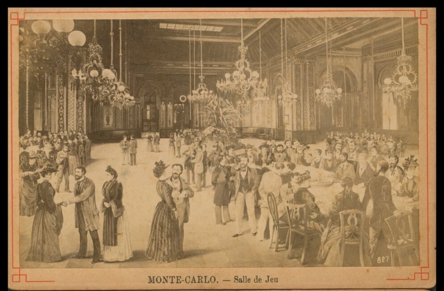 Riproduzione fotografica di una stampa raffigurante una sala da gioco in un palazzo a Monte Carlo.