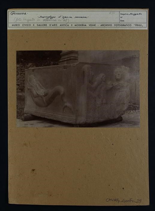 Gemona del Friuli, duomo, cappella feriale: ara sepolcrale romana (I-II secolo d.C.) diventata vasca battesimale nell'VIII secolo. Quella che un tempo era un'urna pagana, presumubilmente già presente nell'antica chiesa, è decorata da bassorilievi del periodo altomedievale.