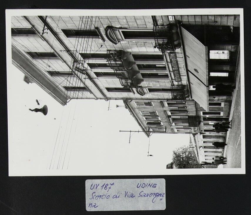 Udine: veduta di uno scorcio di via Savorgnana. A destra il negozio di Ottavio Battaglia (come si desume dall'insegna), attivo negli anni Trenta.
