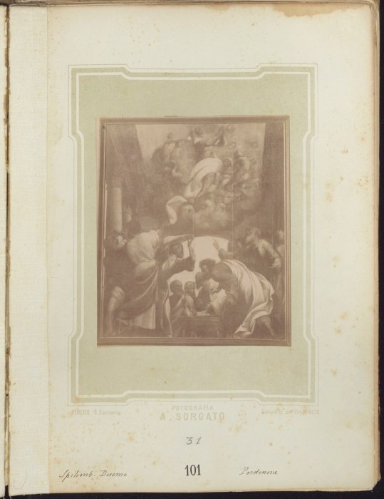 Riproduzione fotografica della portelle dipinte nel 1524 da Giovanni Antonio de' Sacchis, detto il Pordenone, dell'organo del Duomo di Spilimbergo: le portelle chiuse in questa immagine raffigurano "l'Assunzione della Vergine", mentre da aperte raffigurano la "Caduta di Simon Mago" e la "Conversione di San Paolo".