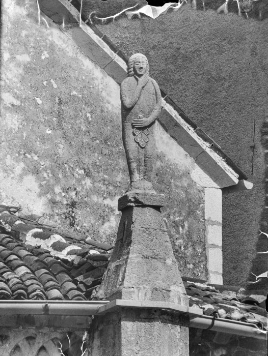 Riproduzione fotografica di una delle statue posizionate sui contrafforti del Duomo di Venzone.