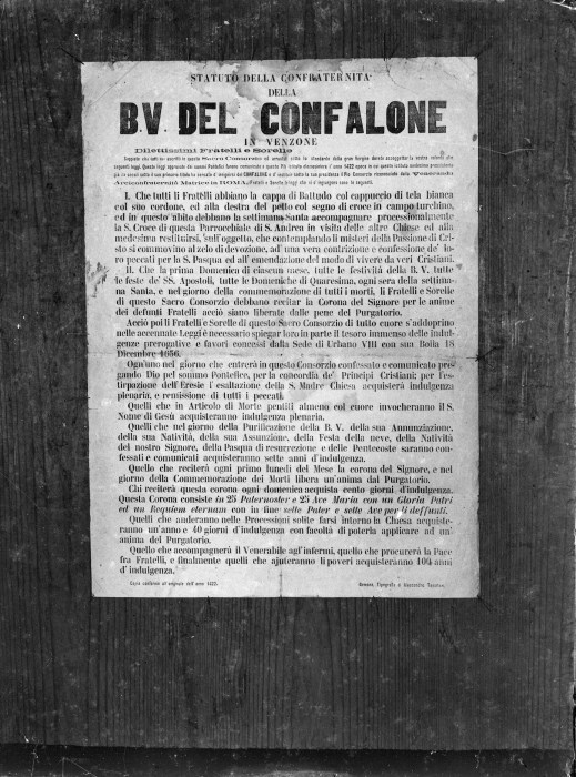 Riproduzione fotografica dello Statuto, cartaceo, della confraternita della Beata Vergine del Confalone di Venzone.