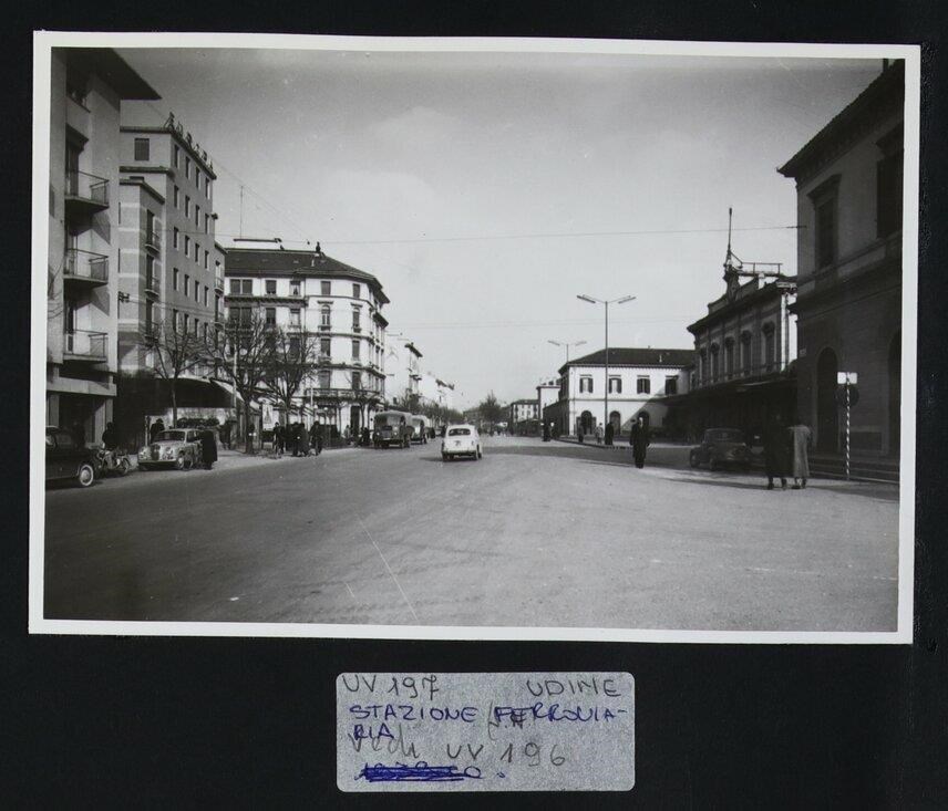 Udine: veduta di viale Europa Unita. A destra, la stazione ferroviaria e, a sinistra, l'hotel Europa.
