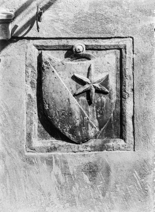 Riproduzione fotografica di un bassorilievo raffigurante una stella e posizionato sul muro esterno di un edificio.