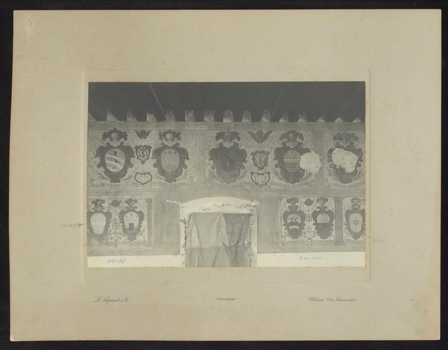 Stemmi delle famiglie nobiliari udinesi associate alla Confraternita dei Battuti ovverosia partecipanti alla realizzazione e mantenimento dell'Ospizio dei Battuti di Santa Maria della Misericordia, ospedale in Udine già nel 1550, situato in via Beato Odorico da Pordenone, ora sede dell'anagrafe comunale.