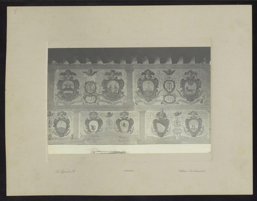 Stemmi delle famiglie nobiliari udinesi associate alla Confraternita dei Battuti ovverosia partecipanti alla realizzazione e mantenimento dell'Ospizio dei Battuti di Santa Maria della Misericordia, ospedale in Udine già nel 1550, situato in via Beato Odorico da Pordenone, ora sede dell'anagrafe comunale.