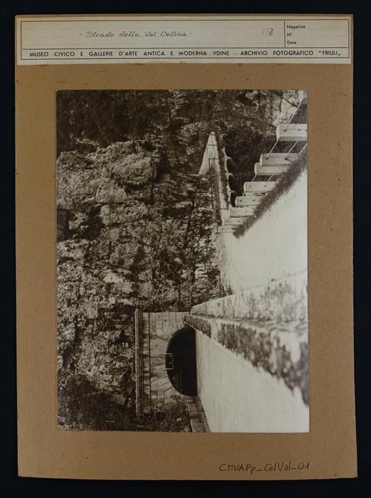 Val Cellina: veduta di due vecchie strade sopra il torrente Cellina. La "vecchia strada" nel canyon (inaugurata nel 1906) collega Montereale Valcellina a Molassa, frazione di Barcis.