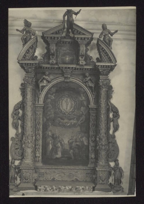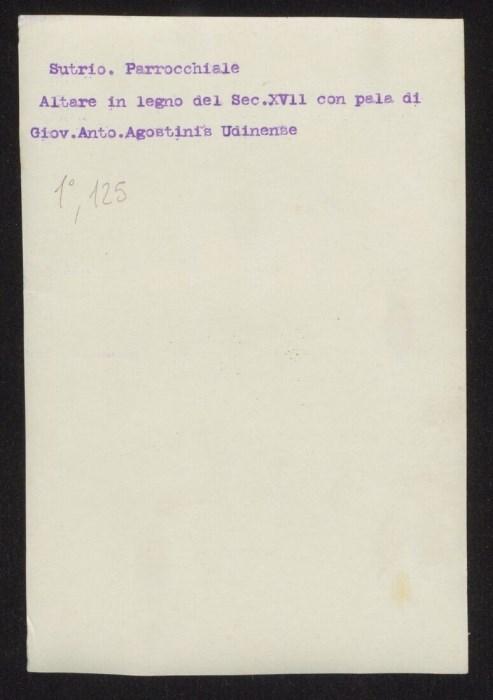 Sutrio. Parrocchiale. Altare in legno del sec. XVII con pala di Gio. Anto. Agostinis Udinense.