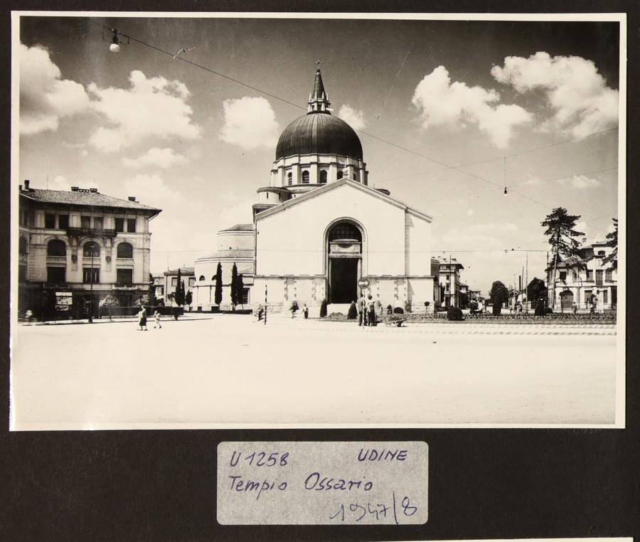 Udine, piazzale XXVI Luglio: il Tempio Sacrario di San Nicolò (Tempio Ossario), progettato dagli architetti Provino Valle e Alessandro Limongelli nel 1925 e costruito nel 1931. A sinistra Palazzo Moretti, annesso allo stabilimento del Birrificio Moretti, progettato dall'architetto Ettore Gilberti (1925-1926).