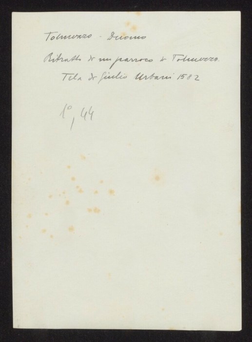 Tolmezzo. Duomo. Ritratto di un parroco di Tolmezzo. Tela di Giulio Urbani 1582