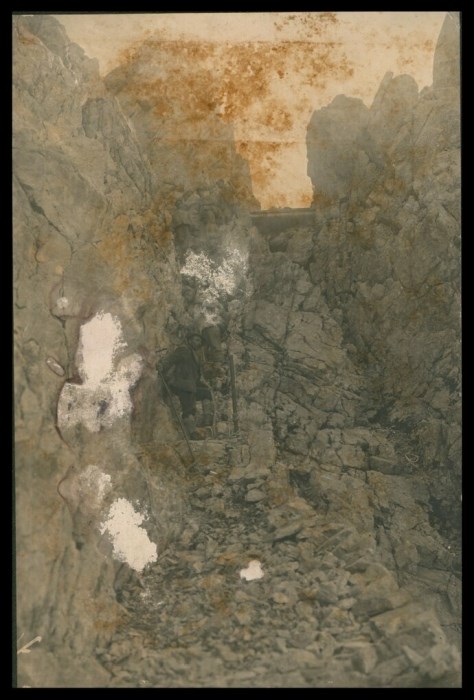 Gruppo di militari lungo un costone di roccia, all'interno di una canalone roccioso