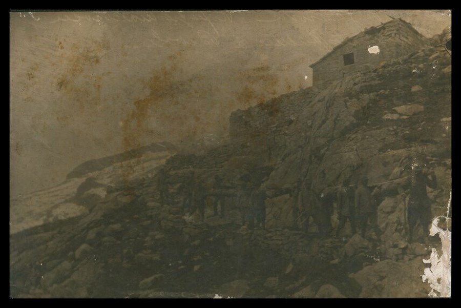 Trasporto a spalla di salme di caduti della Prima Guerra mondiale, recuperate in zona di combattimento