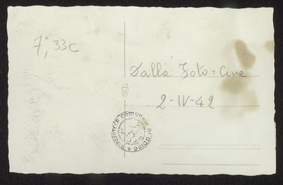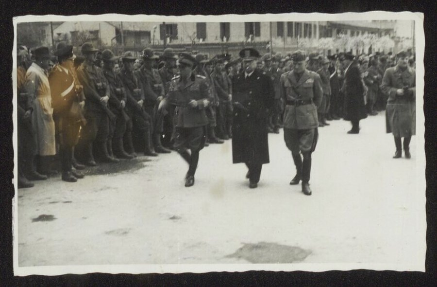 La sfilata dei reduci dal fronte greco della "Divisione Julia" a Udine, il 2 aprile 1942, dalla Stazione lungo le vie cittadine: nell'immagine tre delle Autorità partecipanti alla sfilata. L'articolo del 3/4/1942 su "Il Popolo del Friuli. Organo del Partito Nazionale Fascista", riporta dettagliatamente il grande entusiasmo e la calorosa accoglienza della città agli alpini dell'8° reggimento.