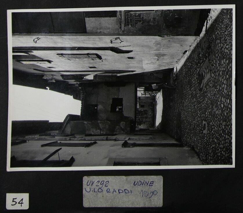 Udine: veduta di vecchie abitazioni site in un vicolo di via Poscolle, vicolo Raddi. In primo piano a sinistra, un manifesto. Verso il centro, due fanciulli.