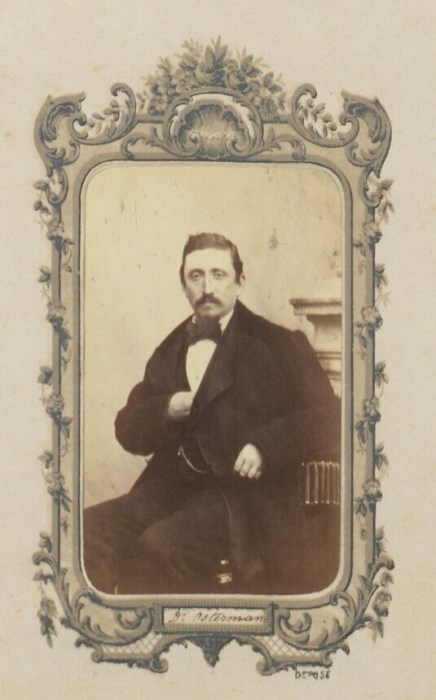 Ritratto in studio del gemonese Valentino Ostermann, folclorista, studioso delle tradizioni popolari e insegnante. Seduto su una sedia nello studio fotografico e ripreso con la mano destra dentro la giacca. Fu partecipe degli ideali risorgimentali e dello sforzo messo in atto da quella generazione per ricostruire il tessuto culturale del Friuli postunitario, ricercatore positivista, uomo di scuola. La sua opera più nota è "La Vita in Friuli", pubblicata a Udine nel 1894.