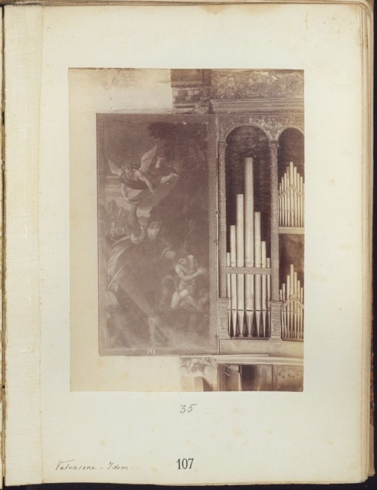 Portella interna dell'organo di Valvasone con "Il sacrificio di Abramo di Pomponio Amalteo