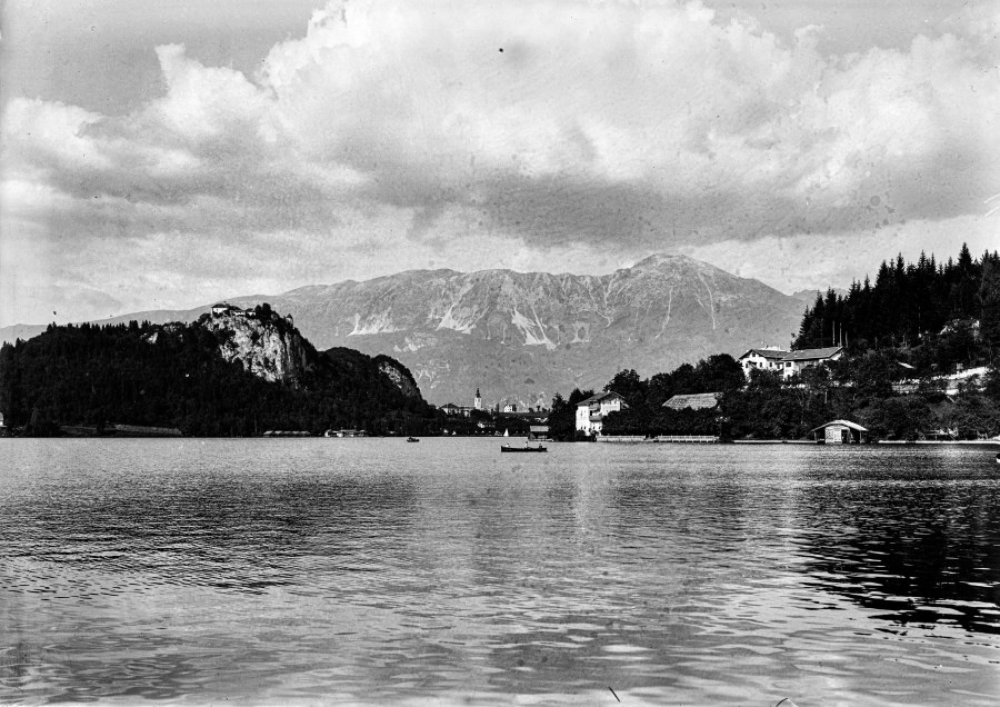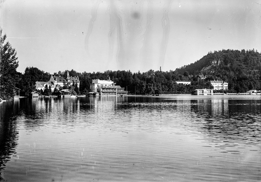 Veduta del lago di Bled. A sinistra si erge lo stabilimento curativo del dott. Arnold Rikli (1823-1906), medico svizzero che nel 1854 si trasferì a Veldes (oggi Bled, Slovenia), dove fondò un istituto di cura, che ampliò progressivamente e che richiamò pazienti da tutta Europa (chiuso nel 1918). La "terapia atmosferica" di Rikli, basata sull'alternanza di bagni caldi e freddi di sole e aria, camminate a piedi nudi e idroterapia, era finalizzata a una naturale sollecitazione della pelle e quindi all'attivazione della circolazione e alla disintossicazione dell'organismo.
