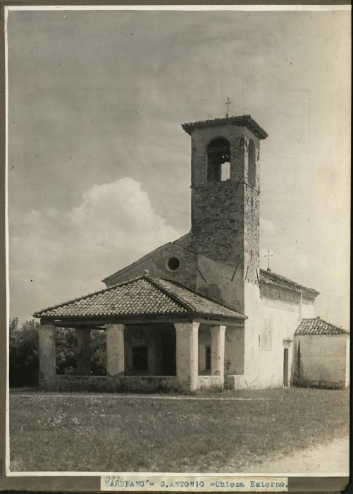 Veduta dell'esterno della Chiesa di Sant'Antonio Abate a Barbeano di Spilimbergo prima che fosse distrutta