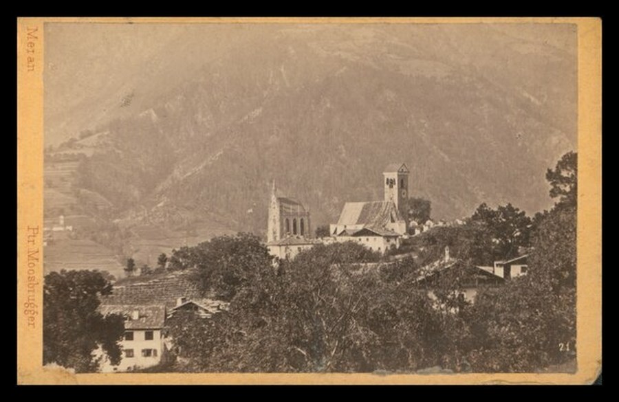 Veduta di una delle chiese presso Merano tra le montagne trentine.