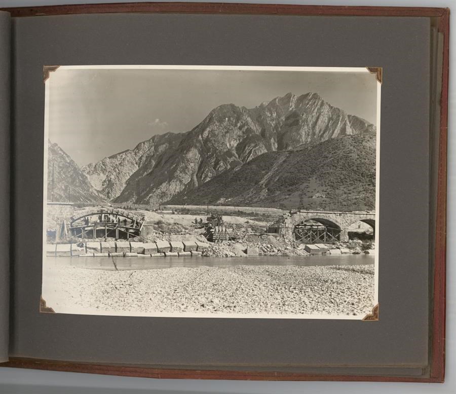 Veduta di porzione del cantiere di ricostruzione del viadotto sui Rivoli Bianchi danneggiato durante la Seconda Guerra Mondiale