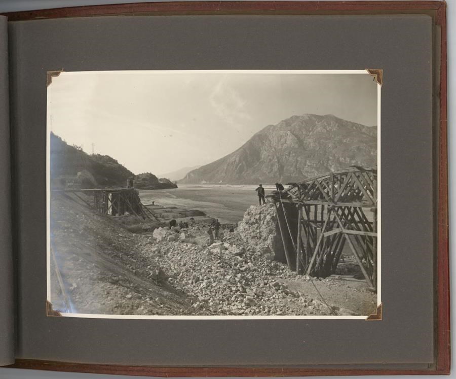 Veduta di porzione del cantiere di ricostruzione del viadotto sui Rivoli Bianchi danneggiato durante la Seconda Guerra Mondiale