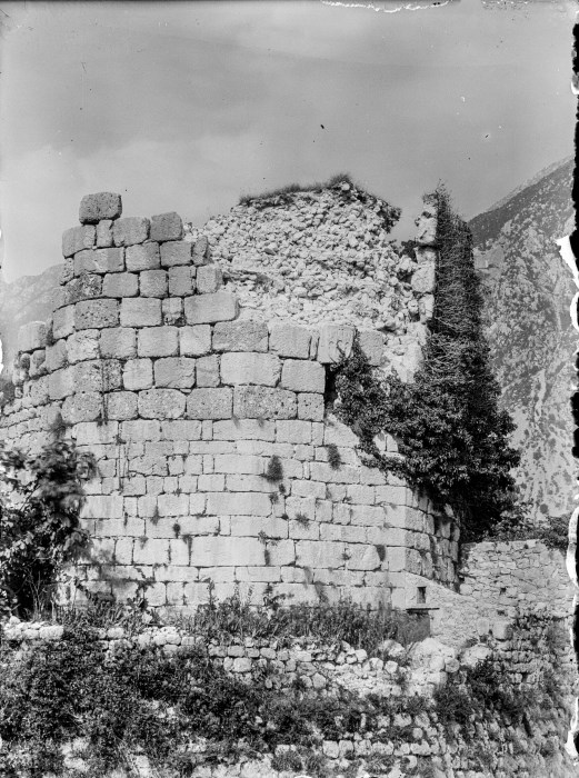 Veduta dei resti di una delle torri delle mura di cinta di Venzone.