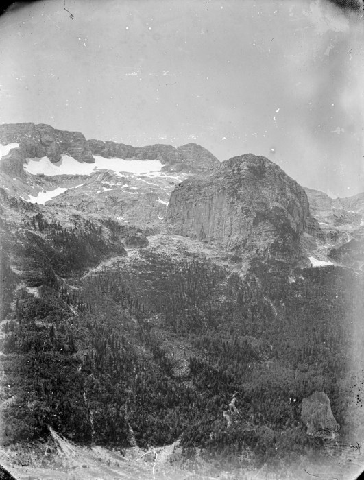 Veduta di una montagna delle Alpi Giulie con piccoli accumuli di neve