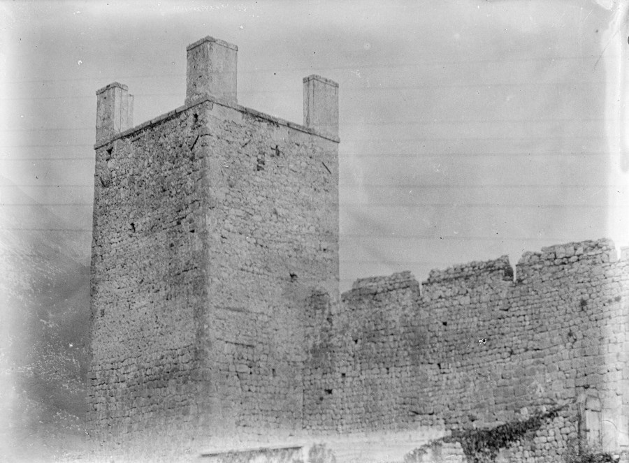 Veduta di una torre e delle mura di cinta della cittadina di Venzone.