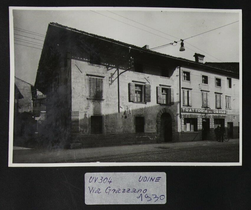 Udine: veduta di uno scorcio di via Grazzano. A destra, la trattoria Al Drago.