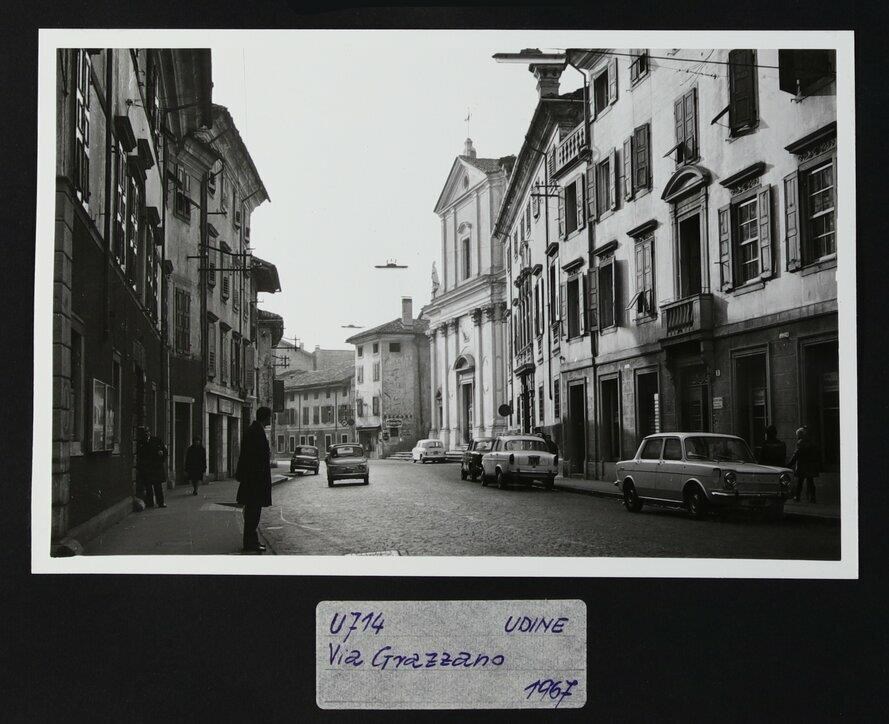 Udine: veduta di via Grazzano con la chiesa di San Giorgio Maggiore (di origine trecentesca). L'assetto risale al periodo compreso tra la seconda metà del Settecento e il 1831.