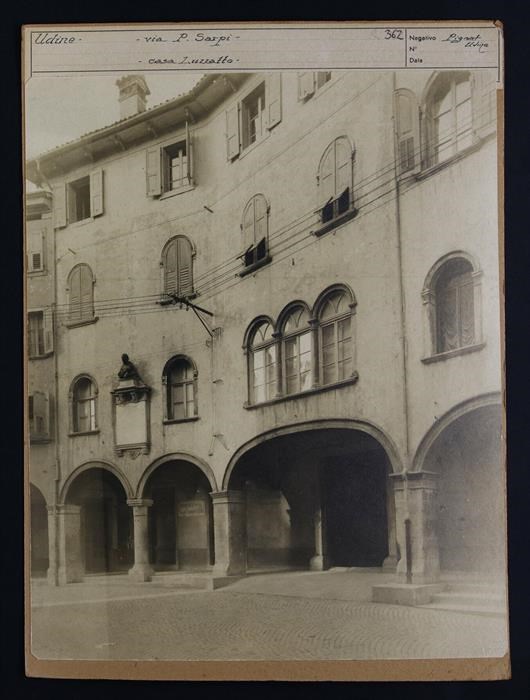 Udine, via Paolo Sarpi: veduta di Casa Luzzatto (metà del XVI secolo). L'abitazione in stile rinascimentale presenta un porticato, una trifora e un busto di Paolo Sarpi.