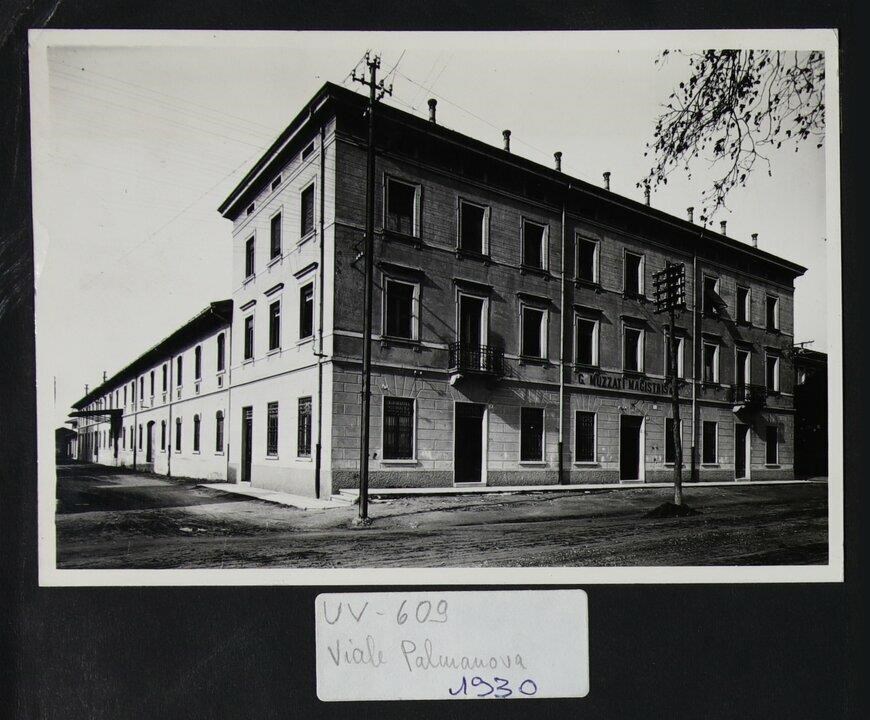 Udine, viale Palmanova: sede della ditta Muzzati & Magistris - come si legge nell'insegna - che ha fondato i mulini sul fiume Ledra (1901). I magazzini sono stati demoliti agli inizi degli anni Novanta.