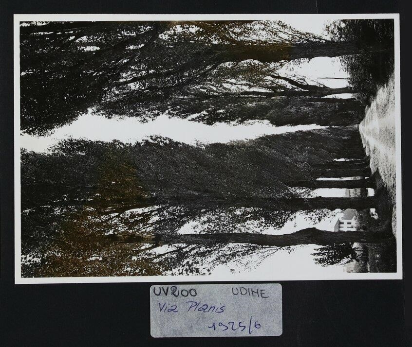Udine: veduta di via Planis costeggiata da due filari di alberi.