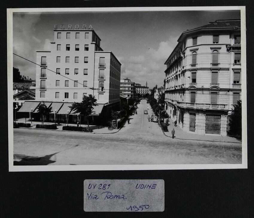 Udine: veduta di viale Europa Unita e di via Roma. A sinistra, l'hotel Europa.