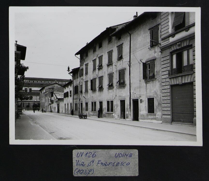 Udine: veduta di via San Francesco. Sullo sfondo, a sinistra, uno scorcio del duomo (prima metà del Duecento).