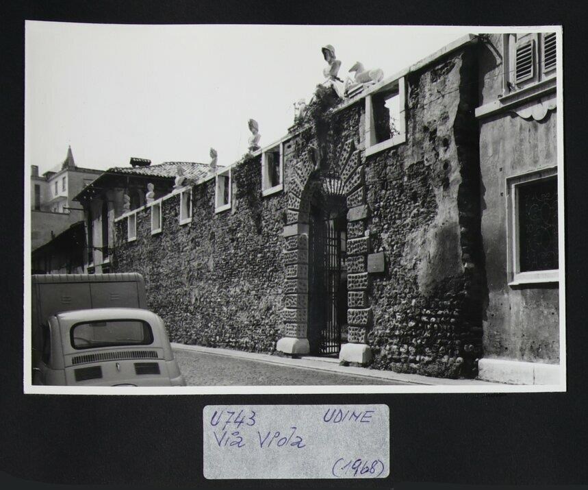 Udine, via Viola: muro di cinta di Palazzo Gorgo-Maniago con portale ad arco a tutto sesto (sulla cui chiave di volta è collocato uno stemma nobiliare) e testine, busto di uomo e due cervi in pietra. La loggia (XVI secolo), che si affaccia su via Magrini, si sviluppa su tre piani con colonne che sostengono, al piano terra e al primo, grandi arcate a tutto sesto in muratura. Il complesso, in origine di proprietà della famiglia vicentina dei Gorgo, è formato, oltre che dalla loggia, dal corpo centrale e da due ali laterali. Nel piano nobile per un certo periodo viene accolto il Museo Friulano delle Arti e Tradizioni Popolari.
