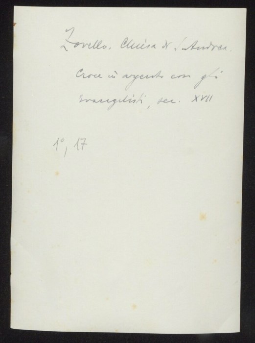 Zovello - Chiesa di S. Andrea. Croce in argento con gli evangelisti, sec. XVII