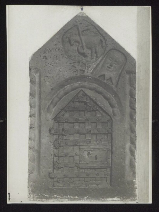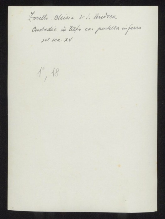 Zovello. Chiesa di S. Andrea. Custodia in tufo con portella in ferro del sec. XV
