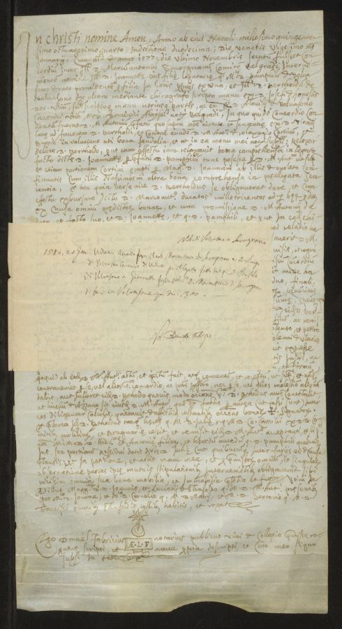 Accordo fra il nobile Marcantonio di Savorgnano e dominus Luigi di Valvasone canonico di Udine per il legato fatto dal quondam dominus Panfilo di Valvasone a Giannetta figlia del detto dominus Marcantonio di Savorgnano di beni in Valvasone per ducati 1300