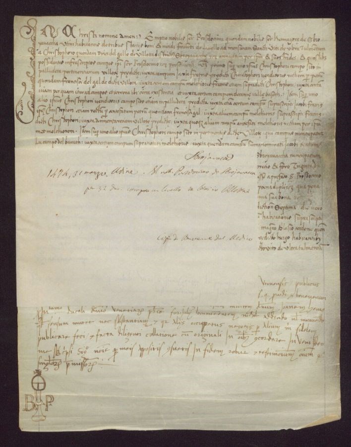Il nobile Prosdocimo di Sbroiavacca per 32 ducati compra un livello su beni in Villotta