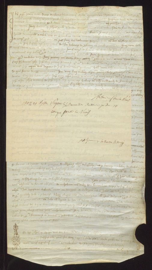 Sulla plica inferiore sono presenti sette fori e traccia di filo passante di cotone