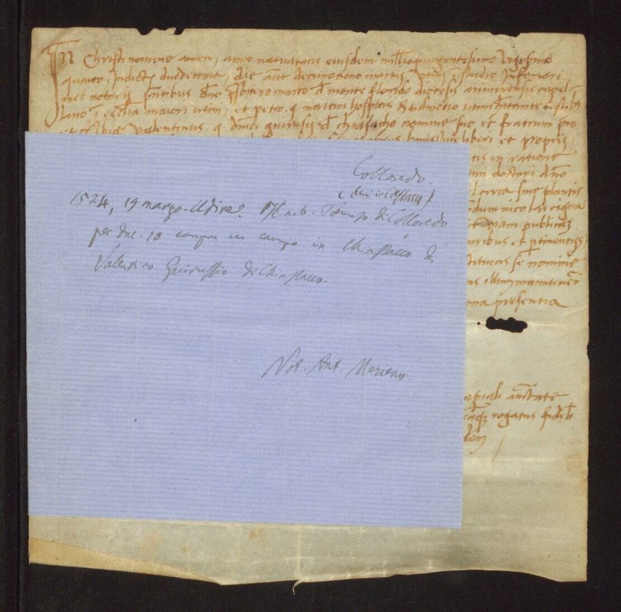 Il nobile Tom<m>aso di Colloredo per ducati 10 compra un campo in Chiassacco da Valentino irussio di Chiassacco