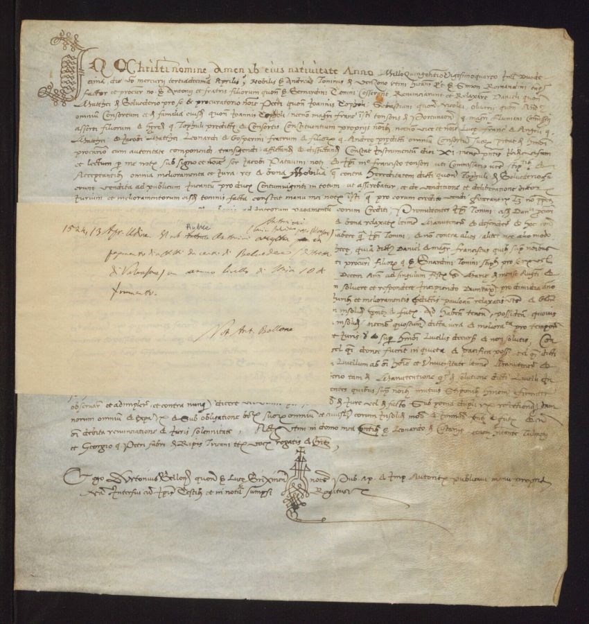 Il nobile Andrea Antonini acquista da pagamento di affitti da certi di Belvedere (distretto di Valvasone) un annuo livello di staia 10 di frumento