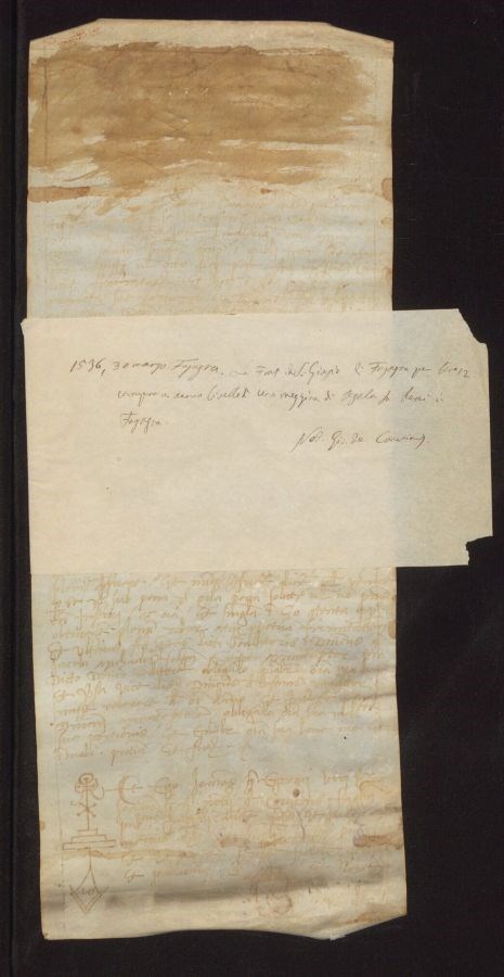 Non sono stati eseguiti interventi di restauro La pergamena è integra, ma la parte superiore è molto rovinata e quindi illeggibile. L&39;inchiostro, inoltre, è molto sbiadito