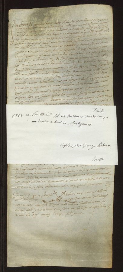 Nel regesto si riporta che il documento è una copia e viene segnalato il nome del notaio che ha redatto l'originale; tuttavia non è specificato chi abbia realizzato questo duplicato