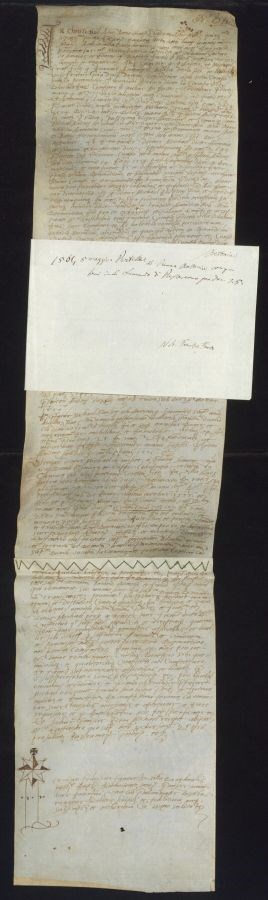 Pergamena unita a un&39;altra pergamena con cucitura sul lato più corto
