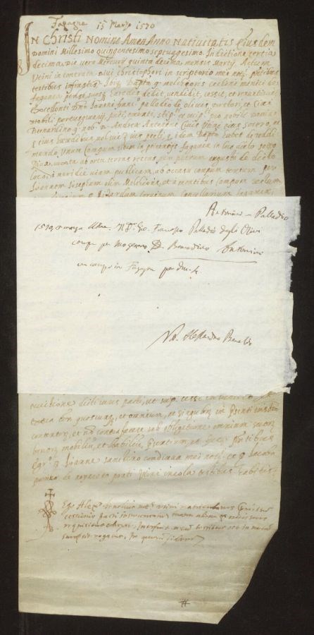 Maestro dottor Giovanni Francesco Palladio degli Olivi compra per suo genero domino Bernardino Antonini un campo in Fagagna per ducati 4