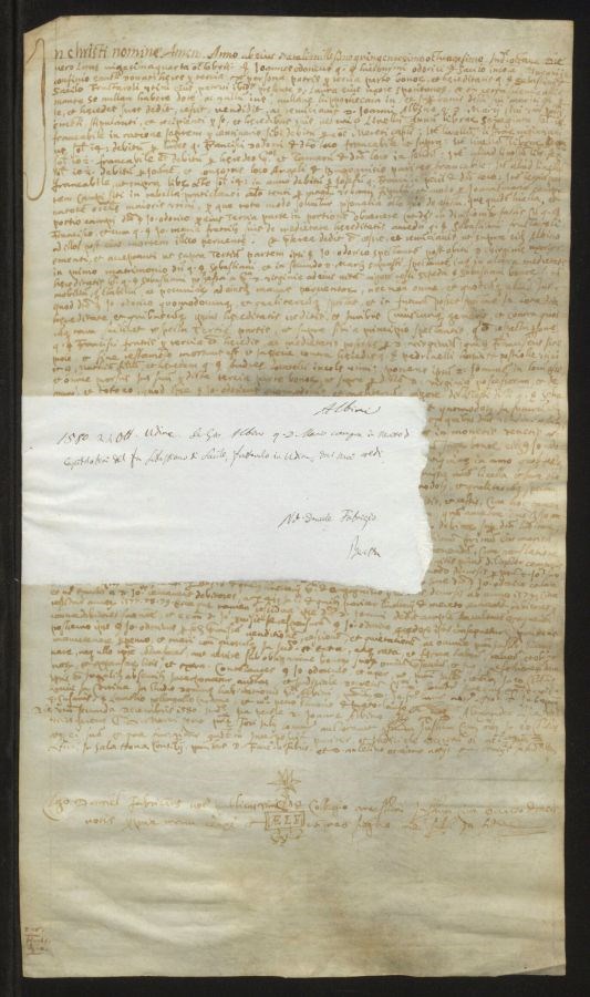 Ser Giovanni Albini quondam dominus Mario compra in Mereto di Capitolo beni del fu Sebastiano di Sacile, frutarolo in Udine, dai suoi eredi