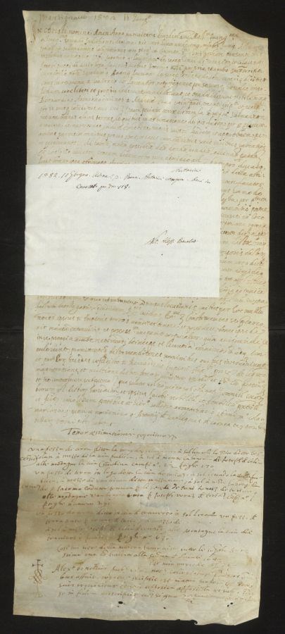 Pergamena unita a un&39;altra pergamena con cucitura sul lato più corto
