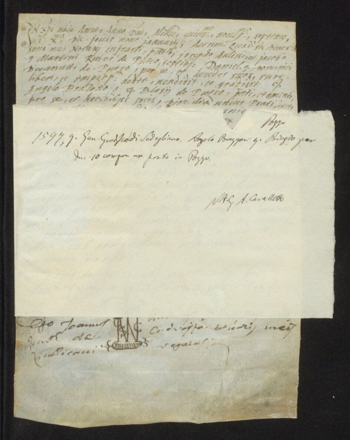 Angelo Brazzoni quondam Biagio per ducati 10 compra un prato in Pozzo